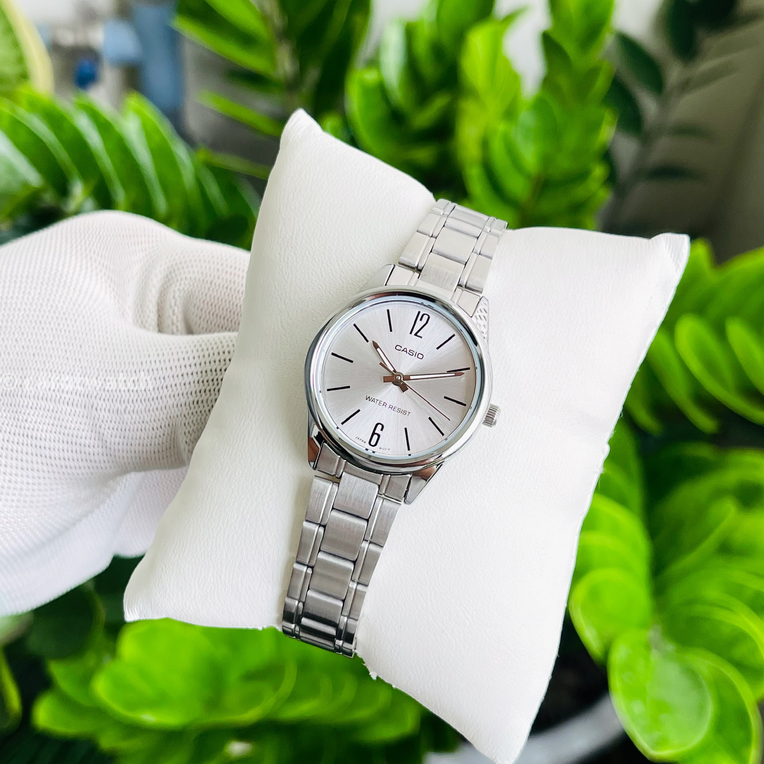 Mặt trắng đơn giản kết hợp cùng dây thép bạc truyền thống. Thiết kế tối giản dễ phối đồ, phù hợp nhiều độ tuổi. Size 28.2mm, dễ dàng lên tay phái nữ.