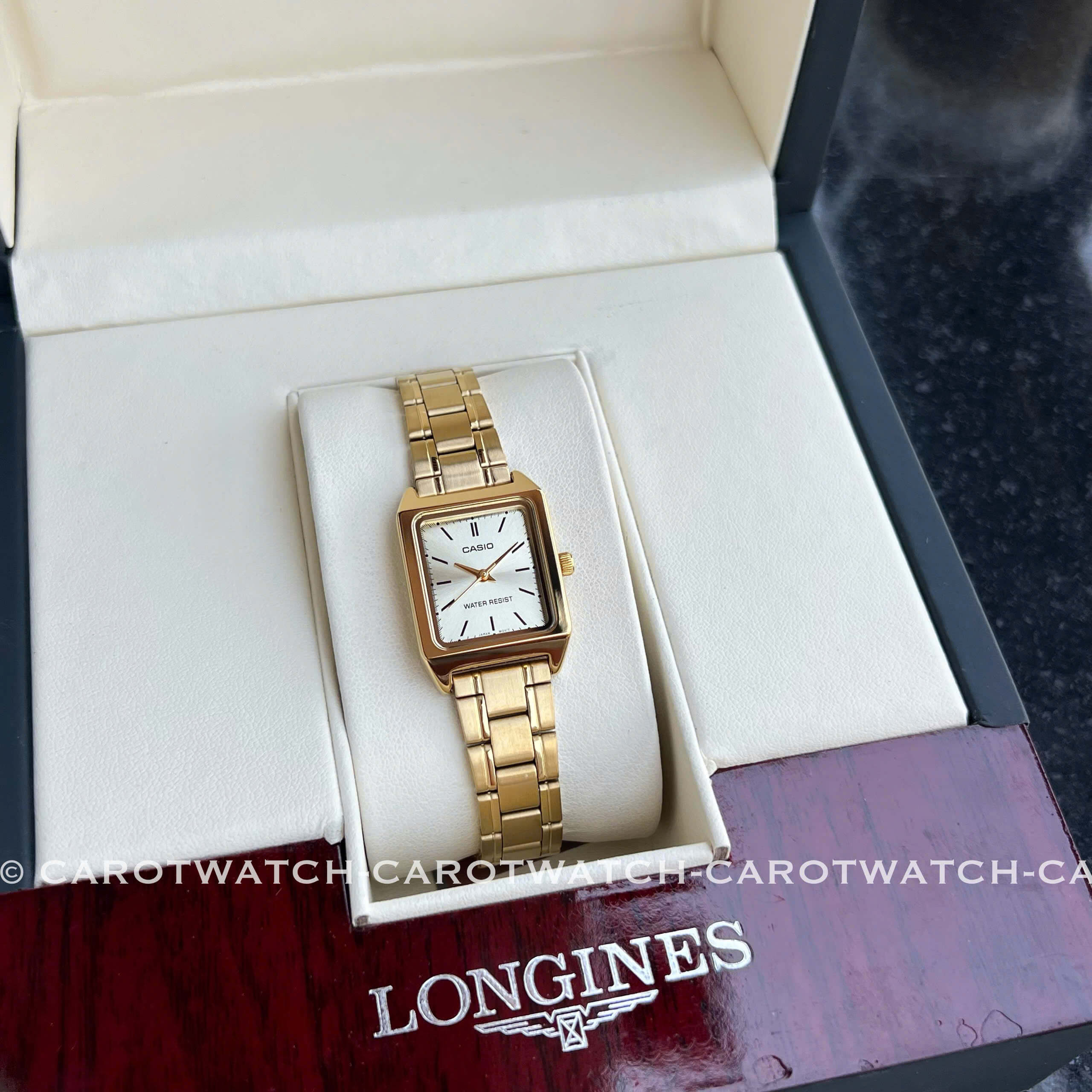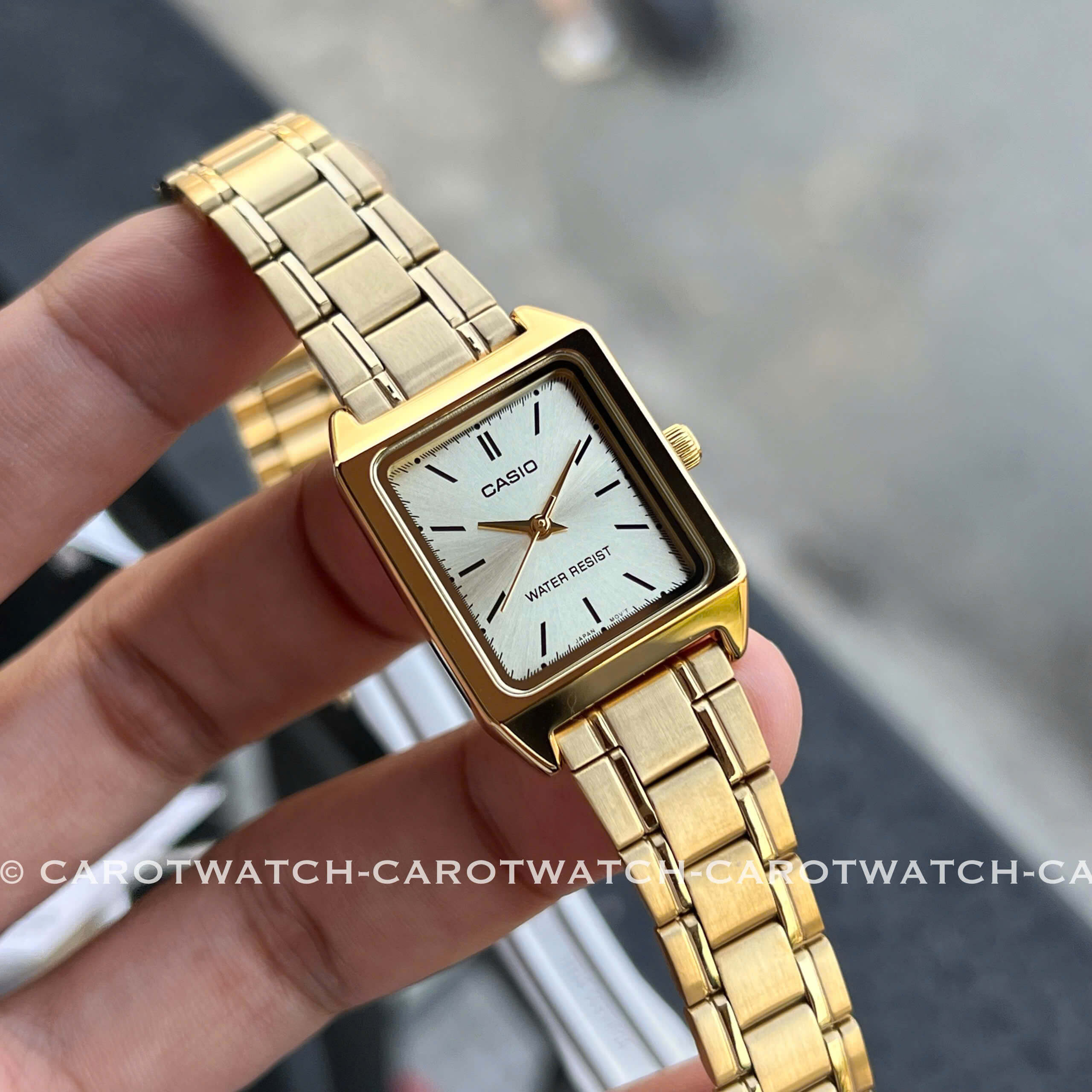 Phiên bản dây thép không gỉ sáng bóng, kết hợp mặt trắng thanh lịch, cọc số tinh giản. LTP-V007G-9E với form mặt chữ nhật nhỏ nhắn, phong cách retro sang trọng – đi làm hay đi chơi đều hợp.