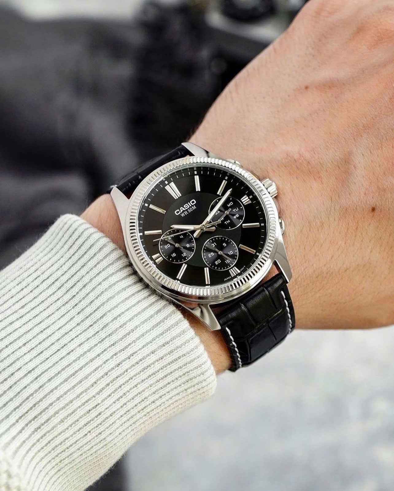 CASIO MTP-1375L-1A – Mặt đen mạnh mẽ, dây da lịch lãm, đậm chất thể thao