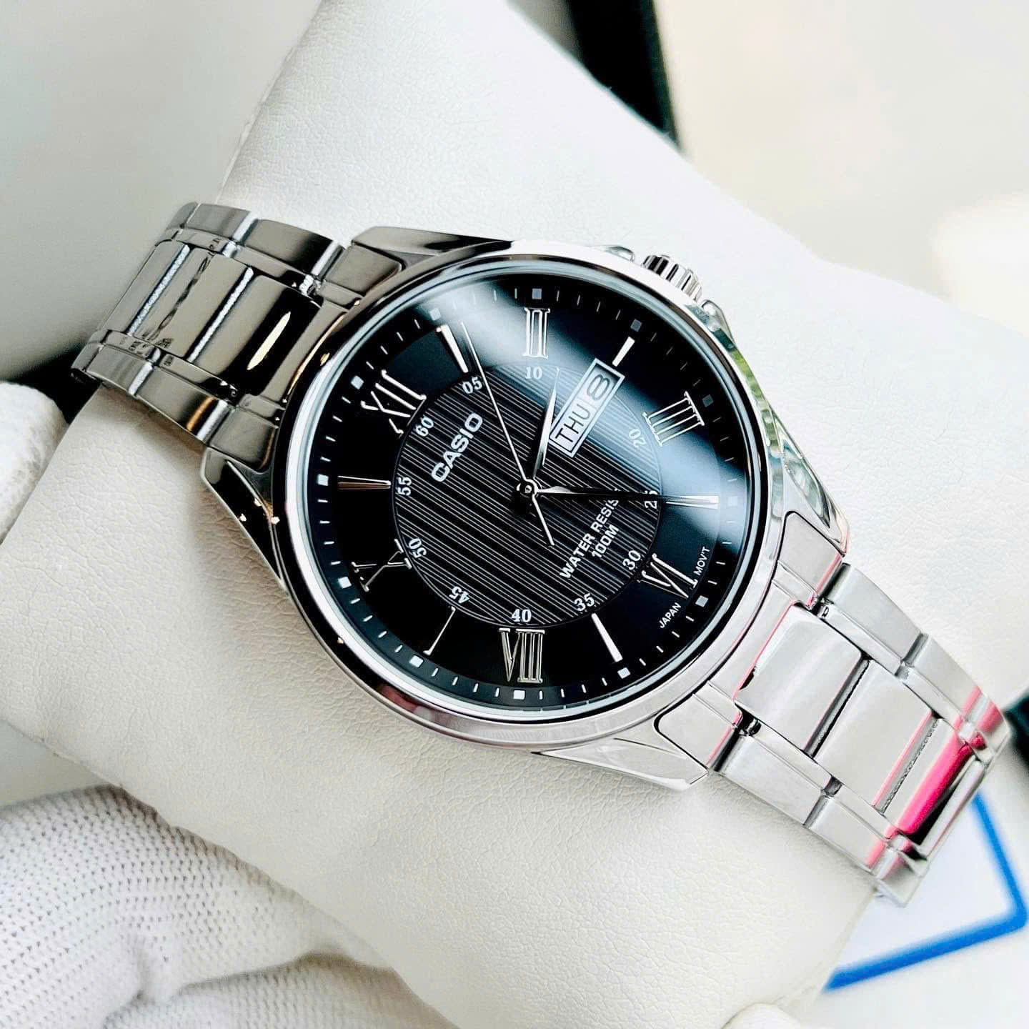 Chạm đến đỉnh cao phong cách với MTP-1384D-1A. Mặt đen sâu thẳm như bầu trời đêm, kích thước 41mm mạnh mẽ dành cho nam, chống nước 10 ATM bền bỉ. Lịch thứ và ngày tinh tế, từng chi tiết tôn lên khí chất quý ông, sẵn sàng tỏa sáng trong mọi khoảnh khắc.