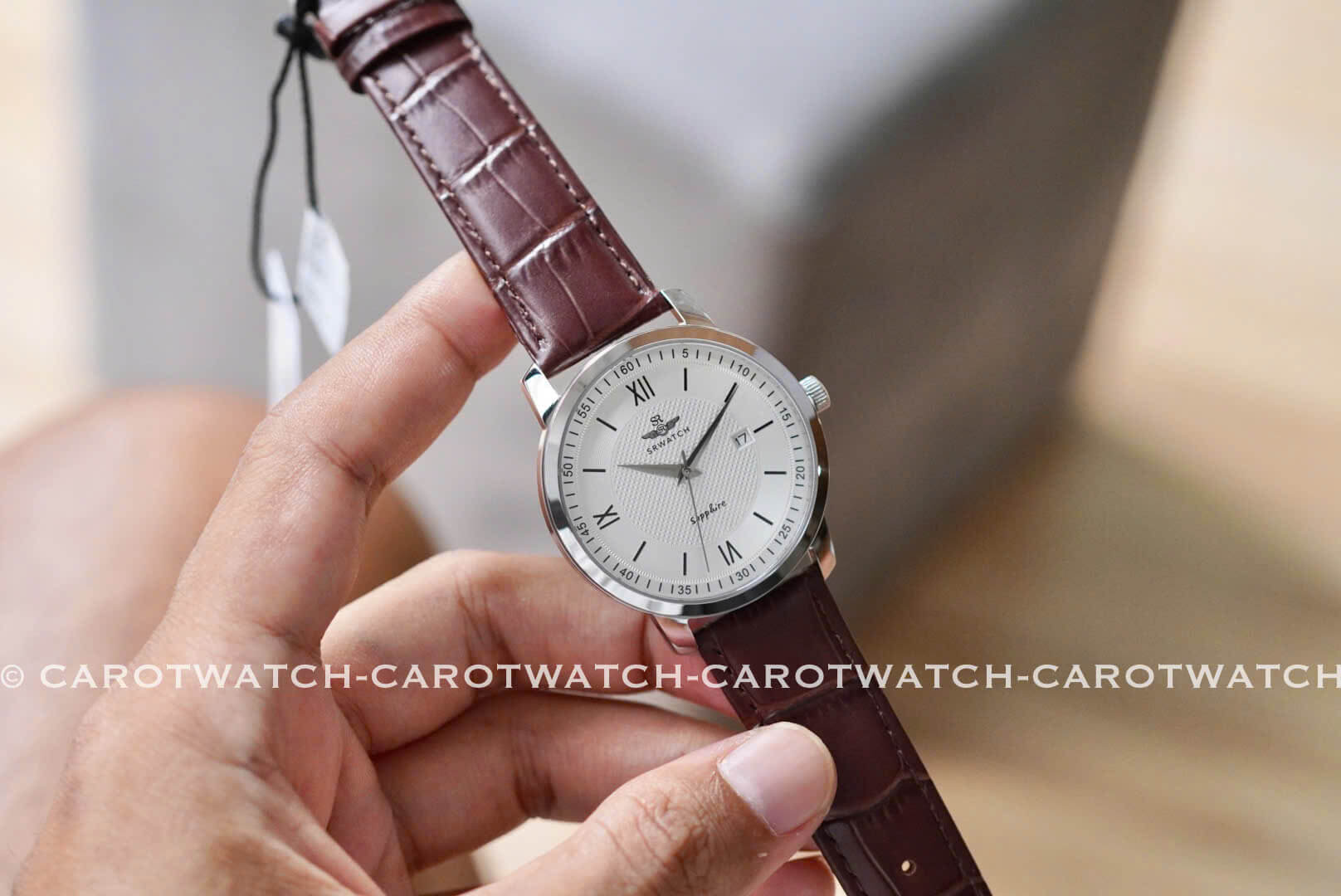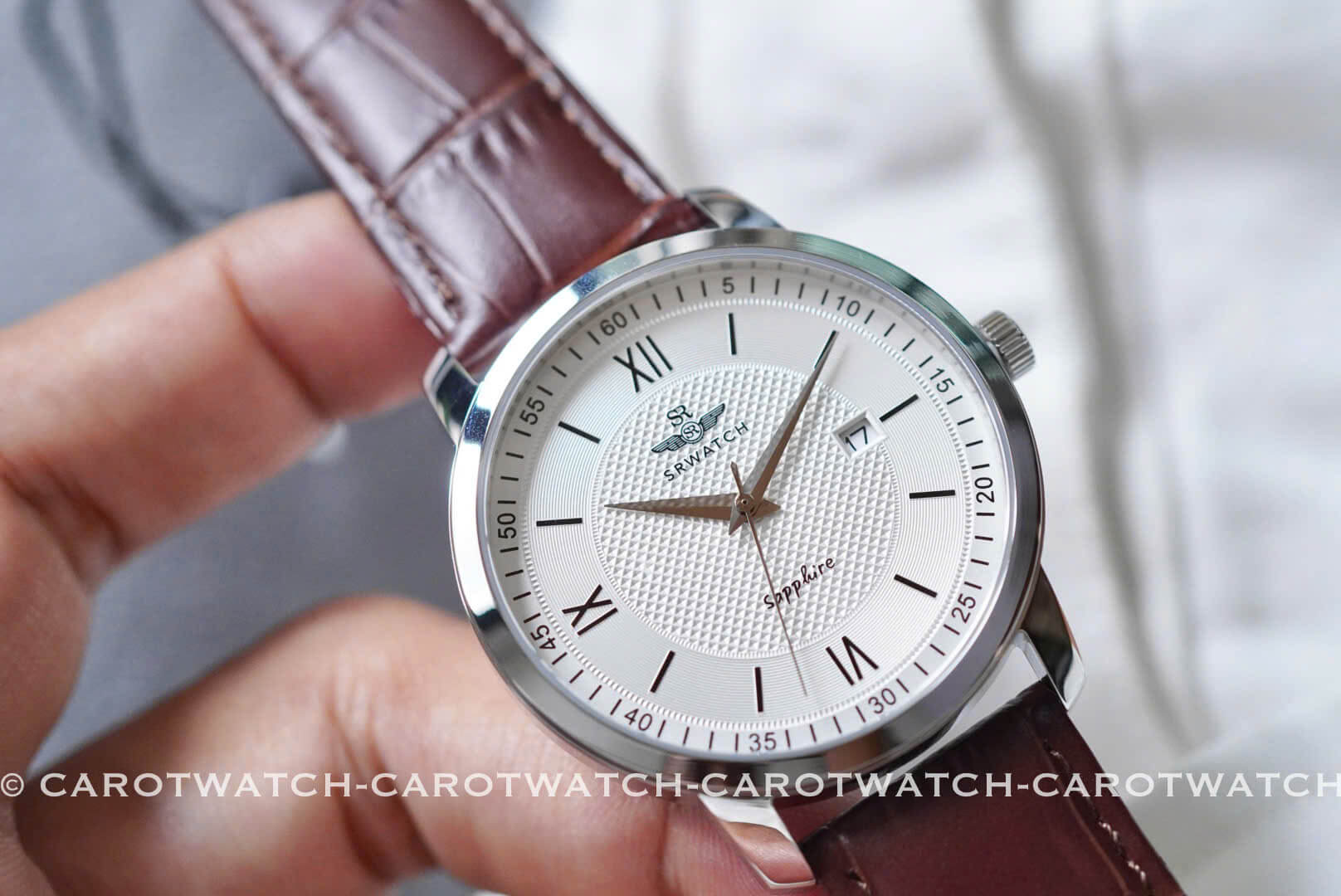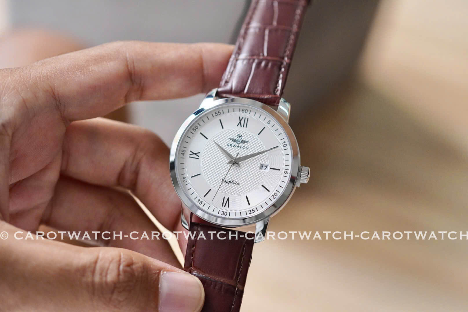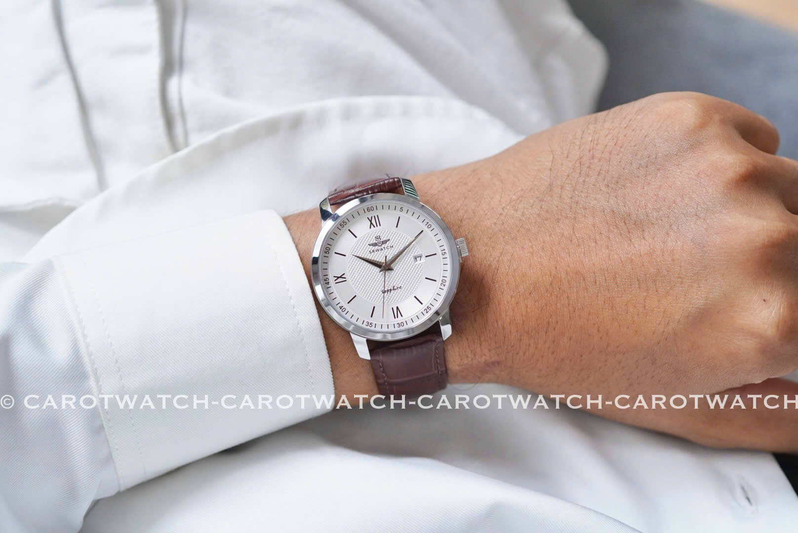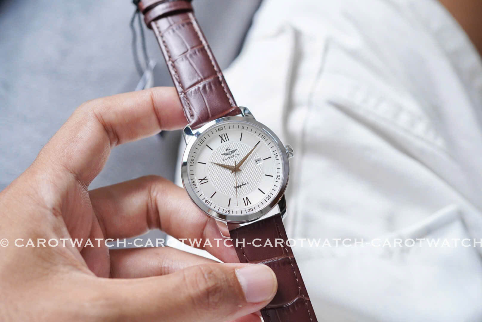 SRWATCH SG3002.4102CV – Mặt trắng nhã nhặn kết hợp cùng dây da nâu thanh lịch