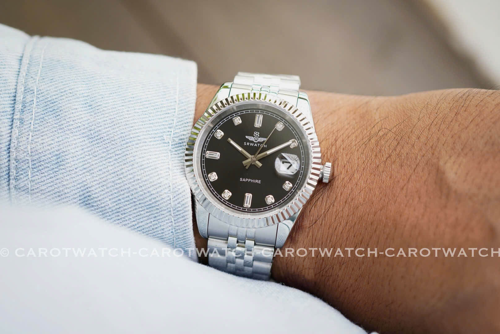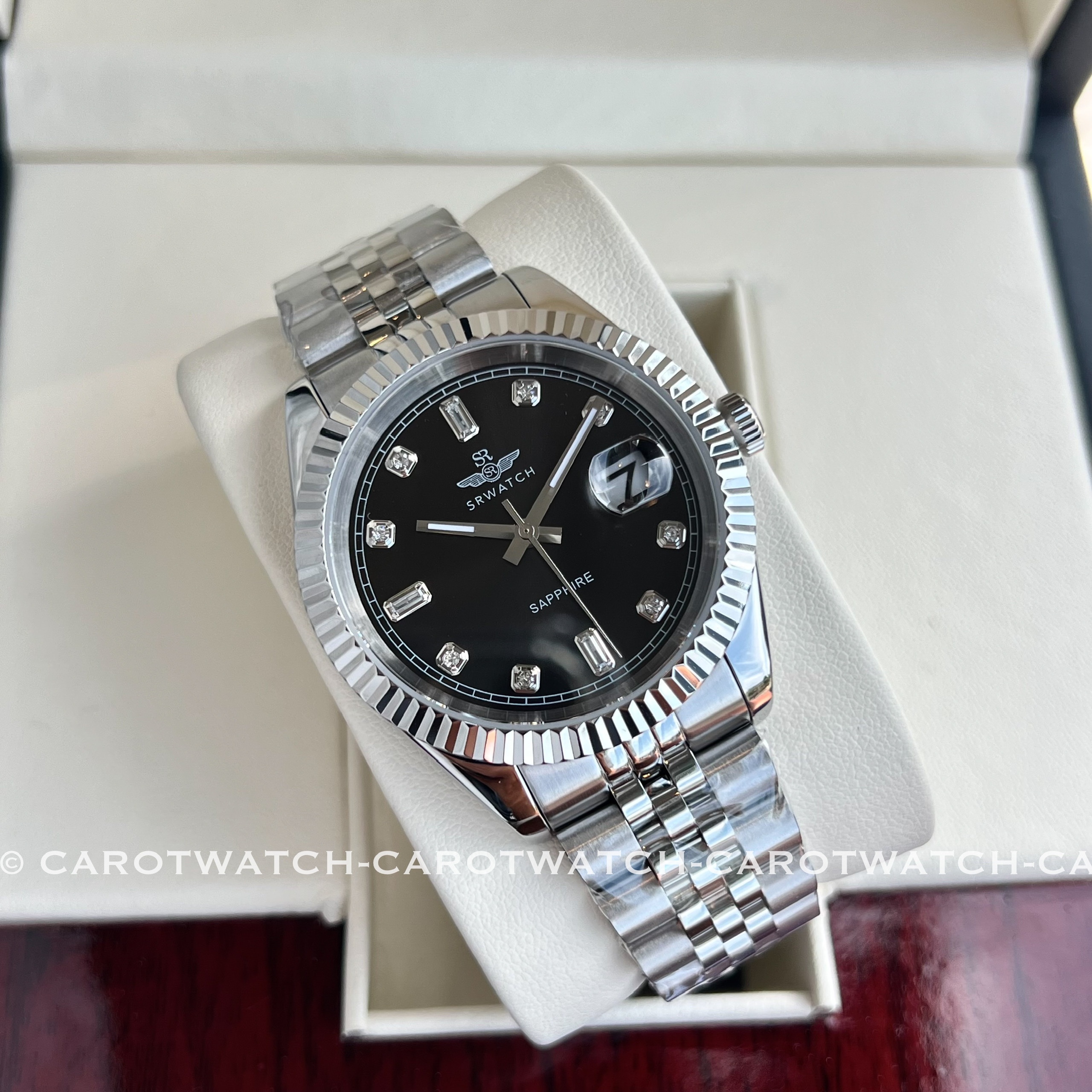 SRWATCH SG7004.1101GM là hiện thân của sự thanh lịch hiện đại, với mặt số màu đen đầy khí chất kết hợp cùng các cọc số đính đá nổi bật. Thiết kế dây Jubilee mềm mại từ thép không gỉ 316L không chỉ mang lại cảm giác đeo thoải mái, mà còn tôn lên vẻ sang trọng cho cổ tay quý ông hiện đại.