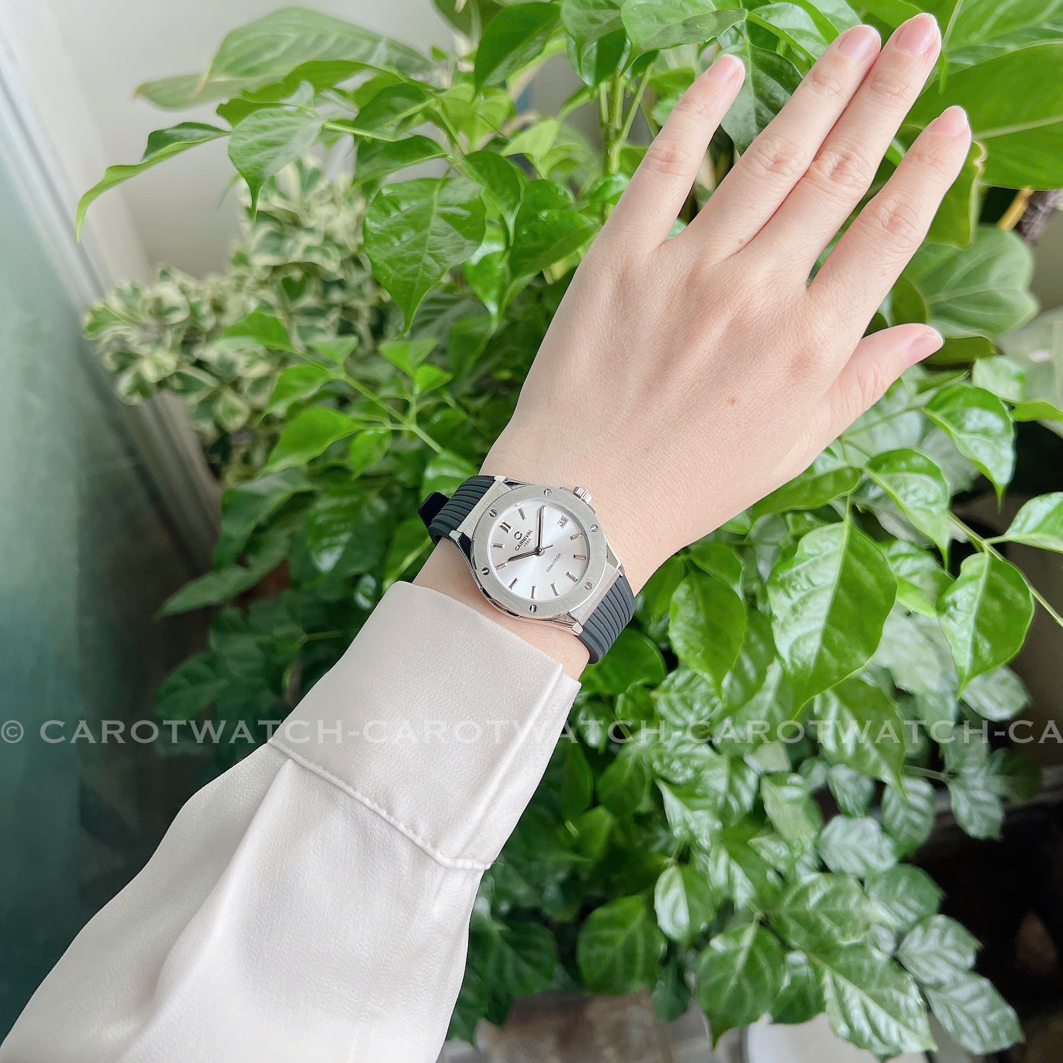 Thuộc dòng sản phẩm size nhỏ gọn, CARNIVAL 8168L-VT-DCS-T có đường kính mặt 34mm, form bo tròn mềm mại kết hợp dây cao su mỏng nhẹ, giúp ôm trọn cổ tay mà không hề tạo cảm giác nặng nề. Đặc biệt, khoảng cách lug to lug siêu ngắn khiến mẫu này phù hợp cả với những bạn nữ cổ tay nhỏ – một điểm cộng cực lớn trong phân khúc đồng hồ nữ tầm trung.
