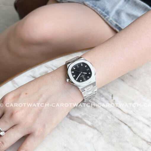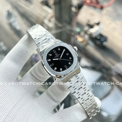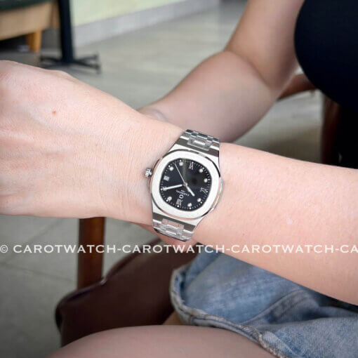 Thiết kế với mặt số đen huyền bí, đính đá tinh tế, tạo điểm nhấn thời thượng. Dây thép 316L bền bỉ, kính sapphire cao cấp giúp bảo vệ tối đa, phù hợp cho cả môi trường làm việc lẫn dạo phố.